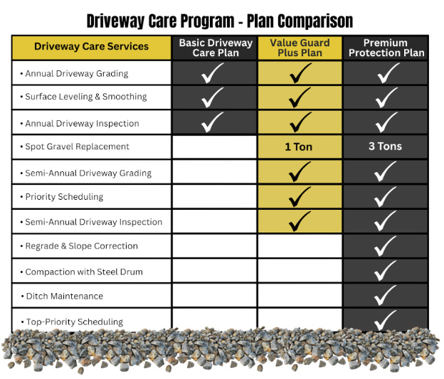 Instead of waiting for ruts, washouts, mud, and costly repairs, our program keeps your driveway beautiful, safe, and functional with scheduled visits designed to prevent problems before they start.